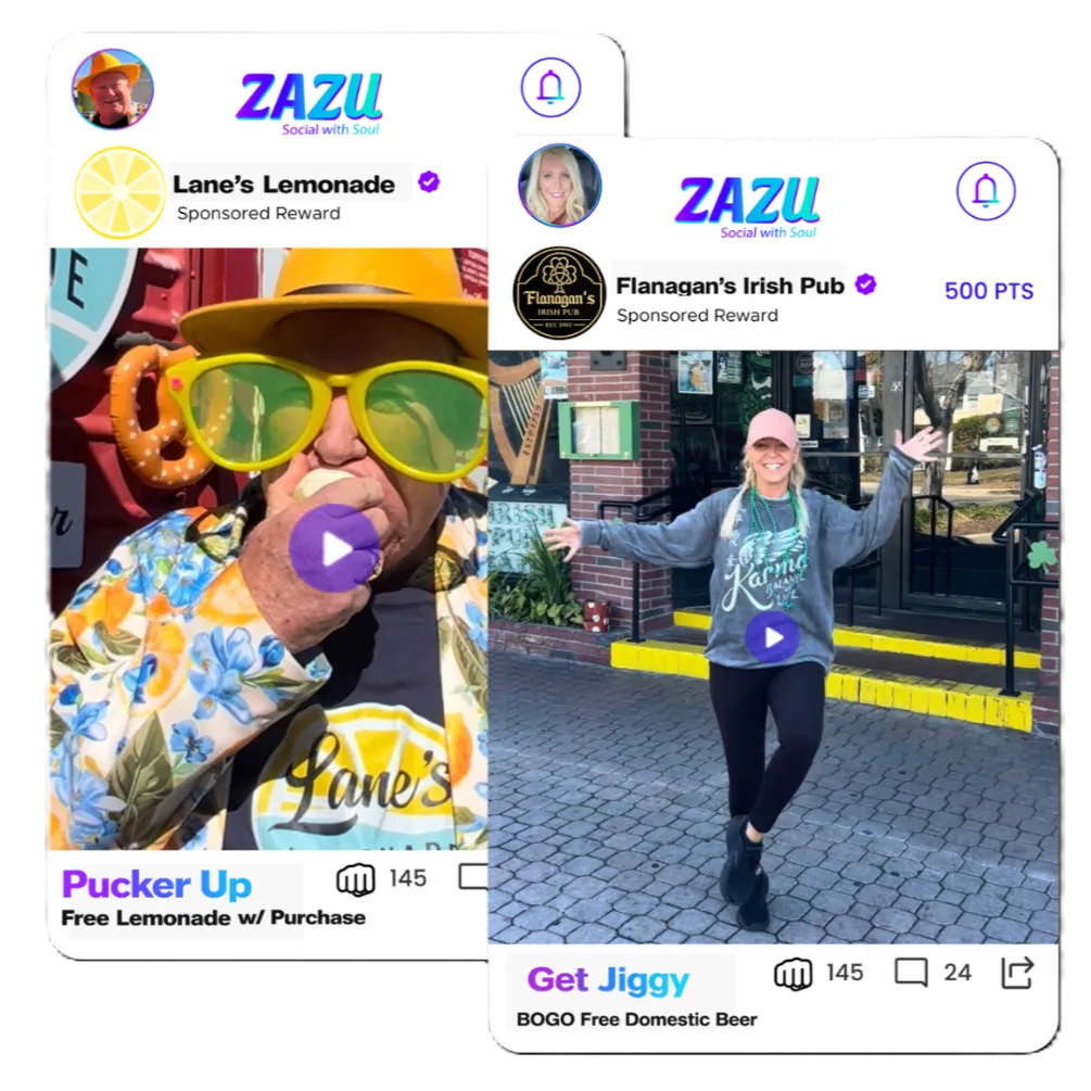 ZAZU Social App gamifies real life. Bold challenges. Real perks. Live leaderboards. Private and public groups. It’s about getting off the screen, getting out of your comfort zone, building real community, and making IRL the main event again.